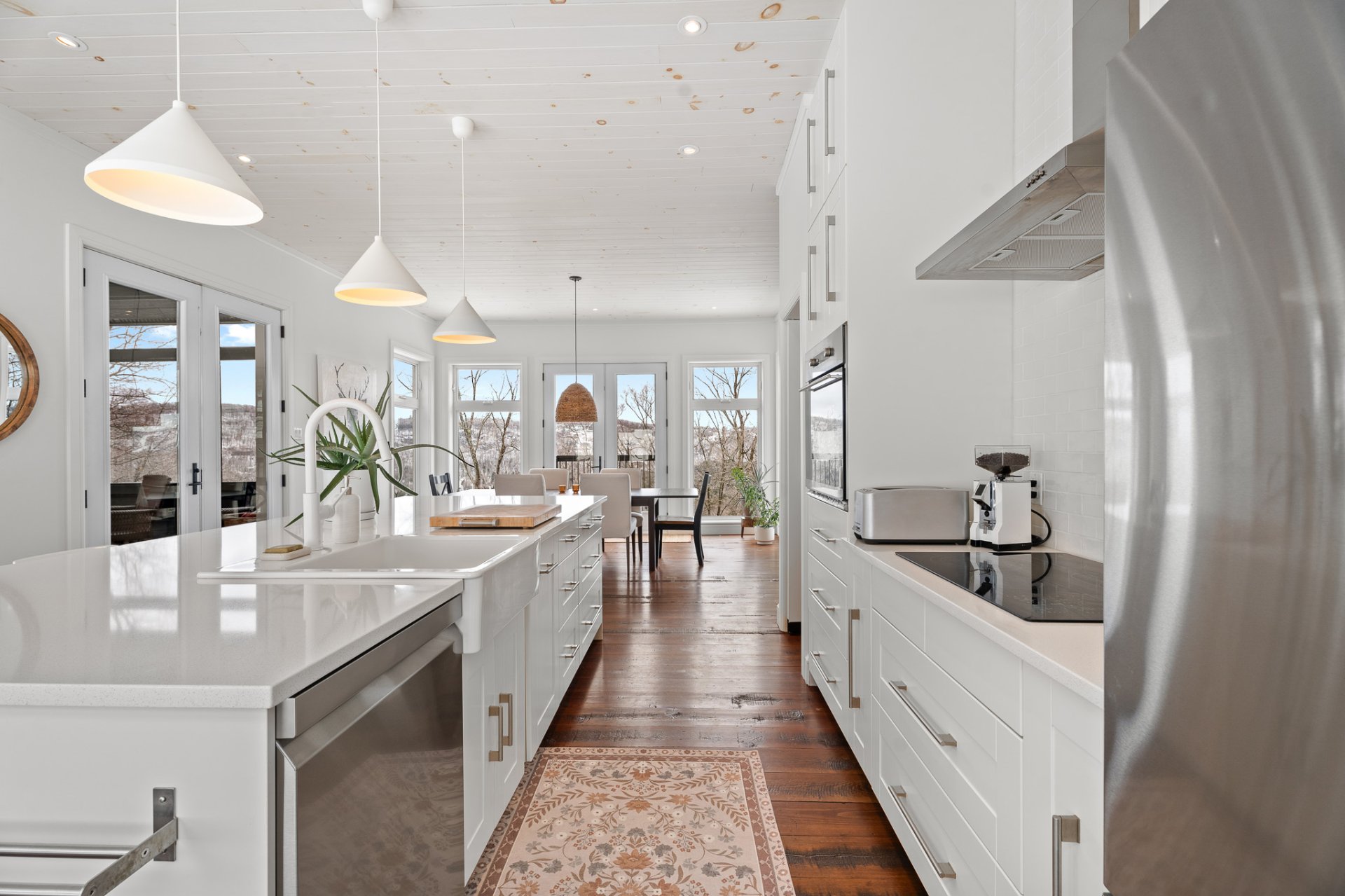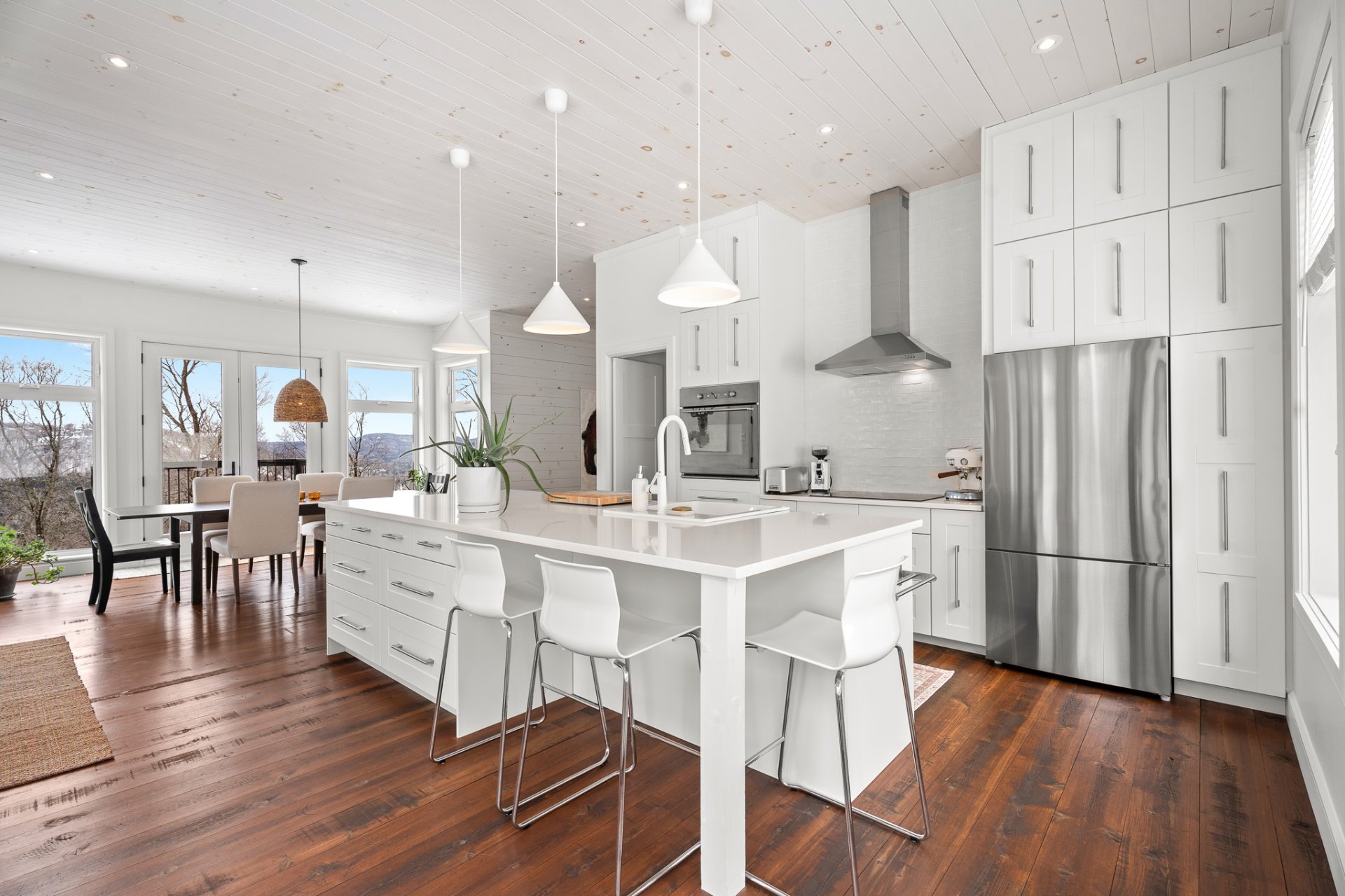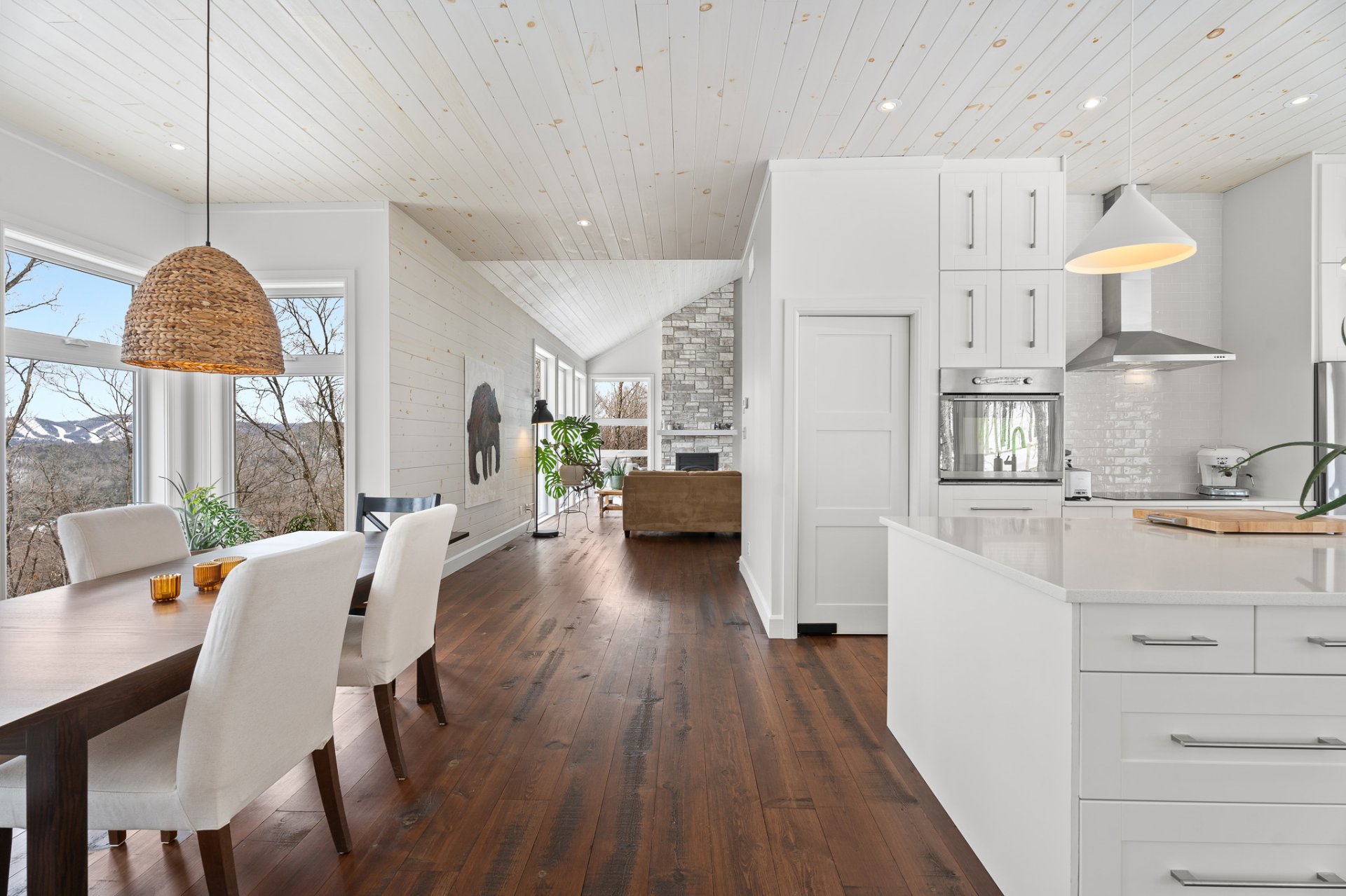 salon, la salle à manger et la cuisine se déploient dans un