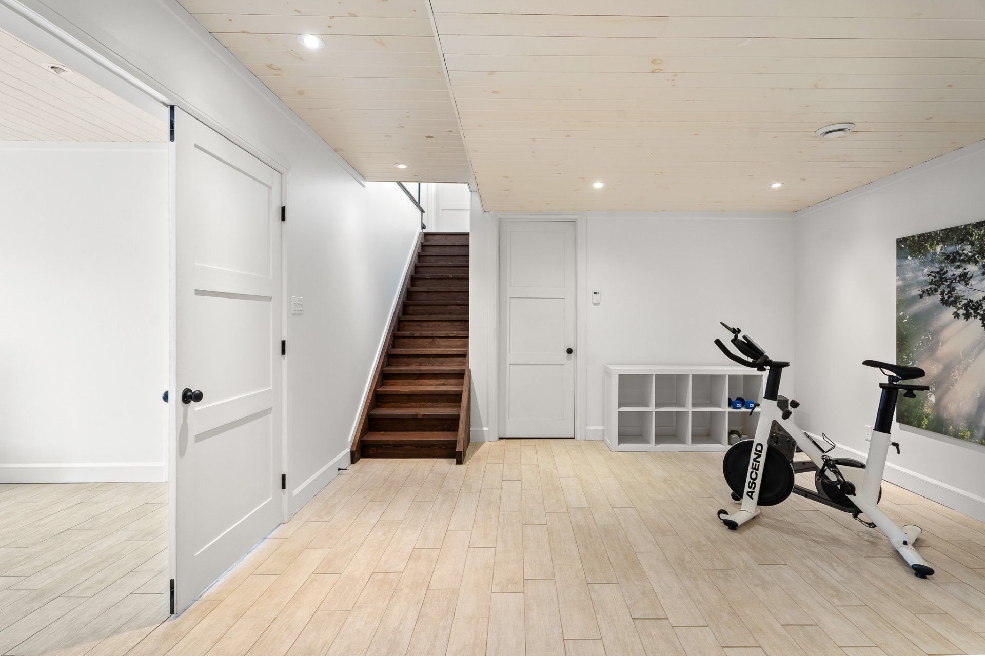 espace servant de gym, une salle de bain complète ainsi