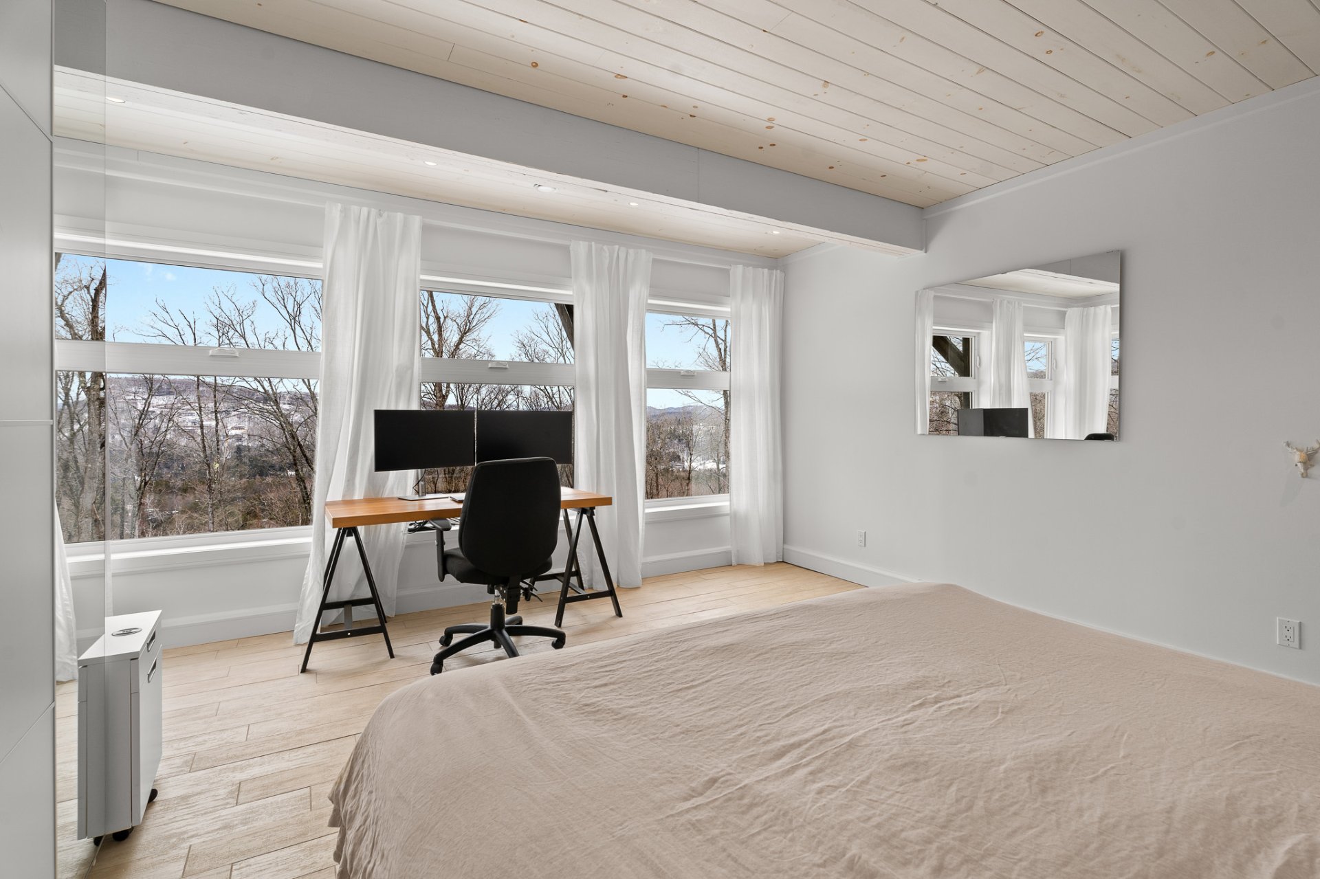 vaste chambre à coucher offrant une vue apaisante sur la