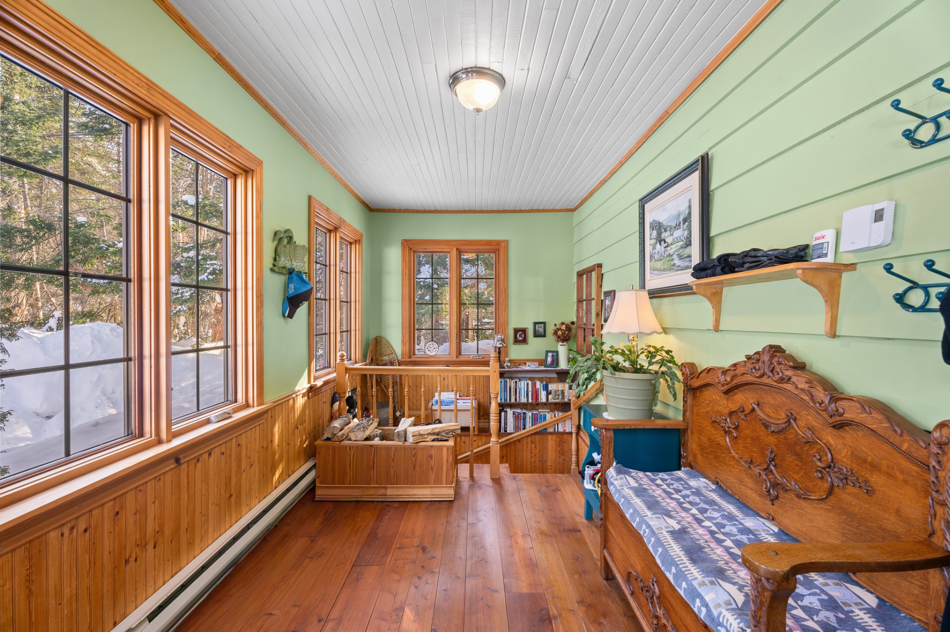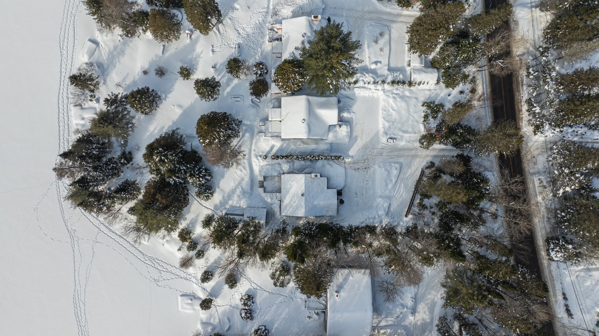 orientée vers le lac. En hiver, le poêle à combustion lente